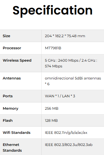 Ausgestattet mit der Dual-Band WiFi 6-Technologie, die Geschwindigkeiten von bis zu 3000Mbps für ein ultraschnelles Netzwerk-Erlebnis bietet. Die Geschwindigkeit wird im Vergleich zu herkömmlichen Geräten um 52% gesteigert und unterstützt bandbreitenintensive Geräte für reibungsloses HD-Streaming, Online-Gaming und große Dateiübertragungen.