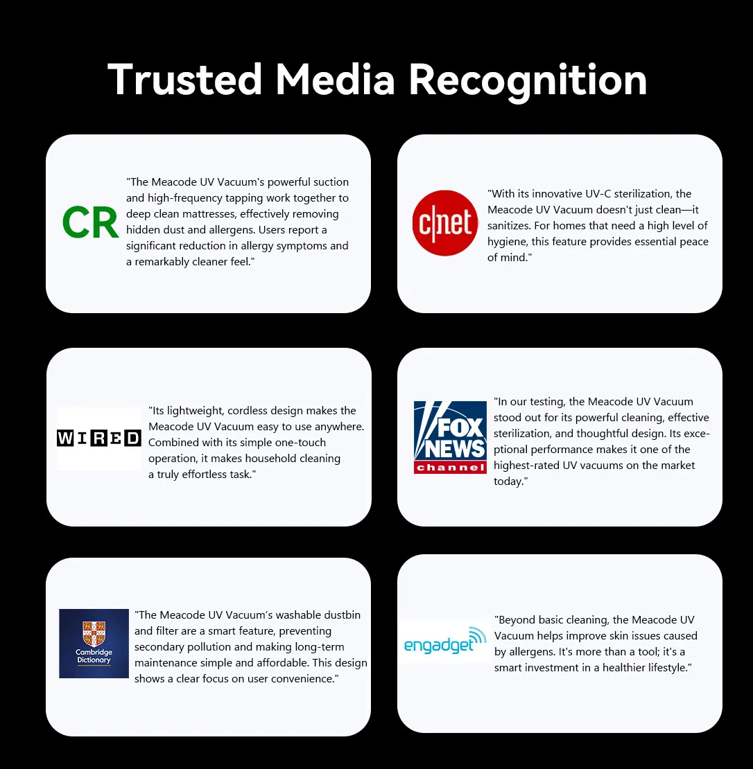 At the heart of its exceptional performance, the Meacode Mite-Removing UV Vacuum Cleaner's powerful motor provides unwavering suction that effortlessly pulls out deep-seated mites and allergens. This makes every cleaning task fast, thorough, and effortless, saving you significant time and energy.