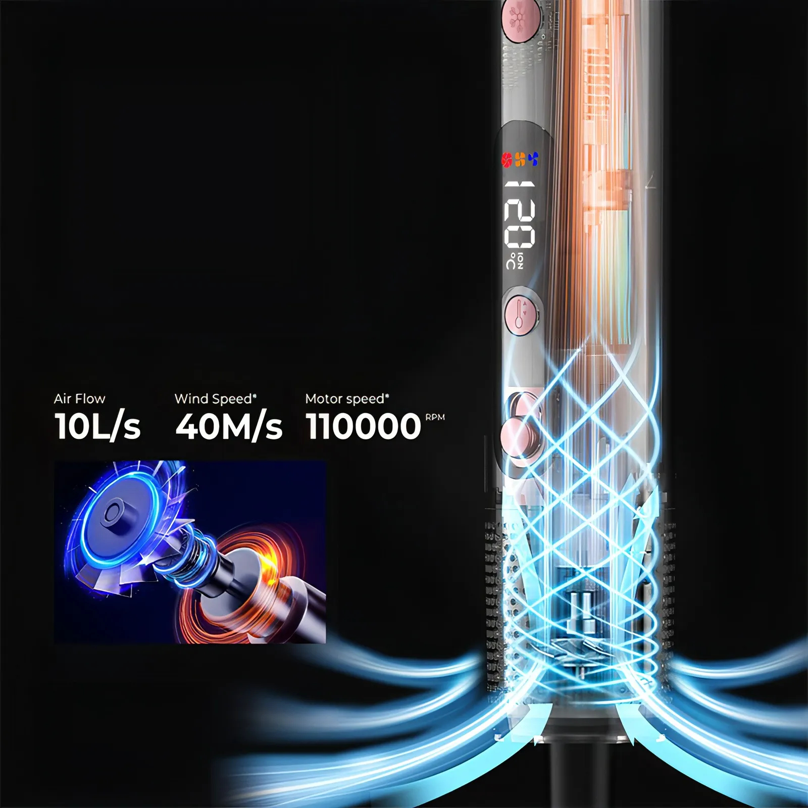 Equipped with a high-performance motor reaching speeds up to 110,000 RPM, delivering powerful airflow to enable fast styling and improved efficiency.
