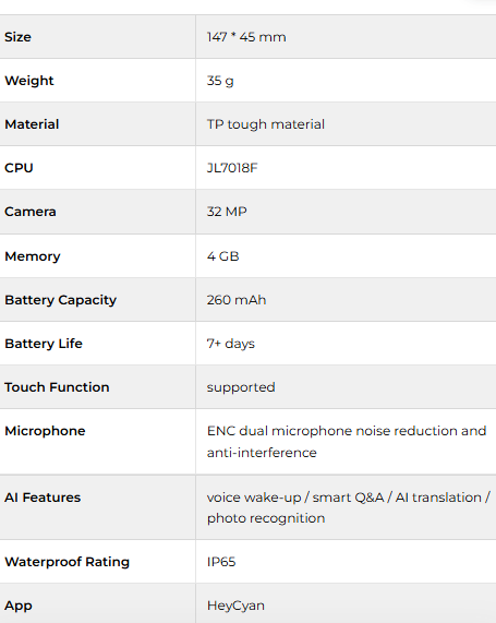 Weighing only 35 grams, offers a lightweight and comfortable wearing experience for all-day use.